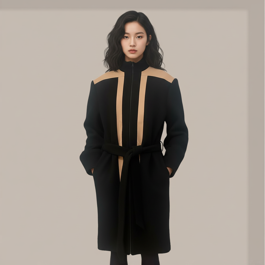 The matte black zipper and the visually enhancing belt ensure a comfortable fit. The soft wool keeps you pleasantly warm, while the leather inserts add a touch of sophistication. Whether you wear it in the office or on special occasions, this coat will always dress you stylishly. The precise craftsmanship of this masterpiece guarantees long-lasting durability and ensures that you will enjoy this high-quality garment for a long time. The Maisonnoèe wool coat with leather inserts is not just a fashion accessory, but a statement for your individual style.